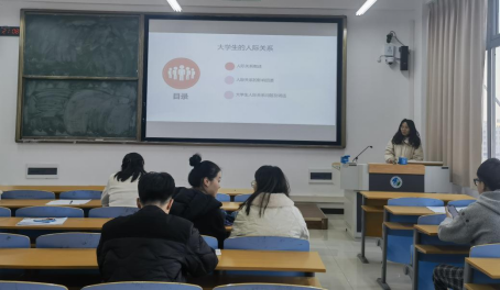 辅导员裴心蕊以“大学生的人际关系”为切入点,分析了影响大学生人际关系的因素,对大学生如何保持良好的人际关系提出建议。