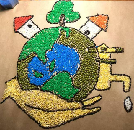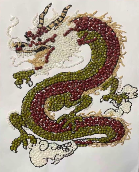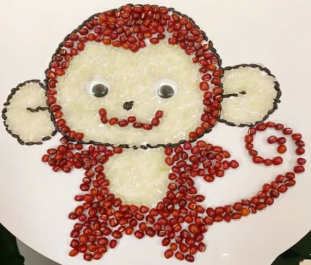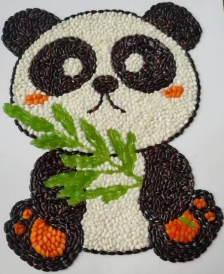 此次活动的主要内容是创作贴豆画。同学们在家中利用硬卡纸、各类豆子和果干等材料,根据给定的主题和特定卡通形象,充分发挥创意,制作出独一无二的艺术作品。在创作过程中,同学们利用不同颜色和形状的豆子,巧妙构思,创作出了栩栩如生的动物形象,有憨态可掬的大熊猫、腾云驾雾的巨龙、寓意吉祥的仙鹤、神气活现的大公鸡、活泼可爱的小猴子等,这些作品不仅色彩鲜艳、形象生动,而且充满了创意和想象力。此外,还有同学以环保为主题,用豆子贴出了节约用水的宣传图片,呼吁同学们珍惜和保护水资源,展现了他们对环保事业的关注和热爱。