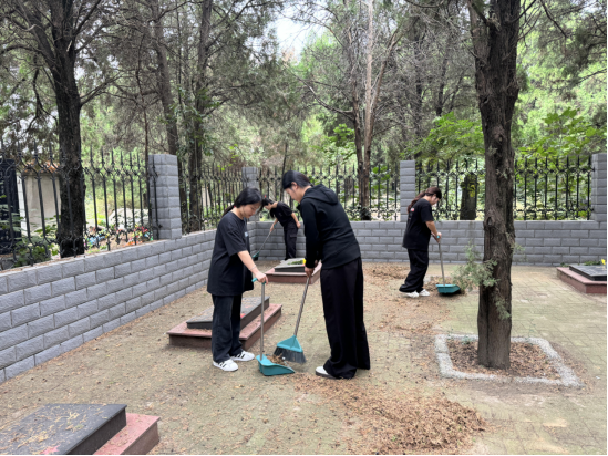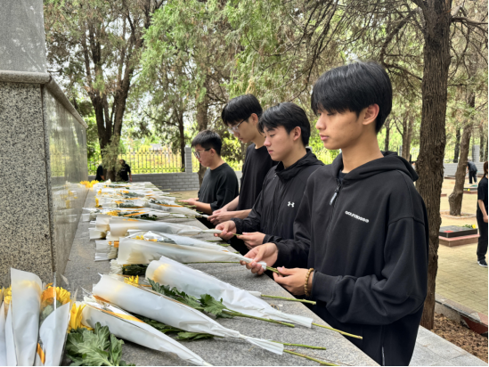 上午,全体学生怀着崇敬的心情来到新郑烈士陵园。在陵园前,大家庄严肃立,向革命先烈深深鞠躬并默哀,以此表达对革命先烈的无限敬仰和深切怀念。由学生代表手捧鲜花,缓步走向烈士纪念碑前,向烈士们敬献鲜花。随后,学生代表发言,她带领大家回顾了革命先烈们的英勇事迹。一代代革命烈士们为了国家的独立、民族的解放和人民的幸福,抛头颅、洒热血,谱写了一曲曲感天动地的英雄赞歌。这些事迹让在场的每一个人都深受感动,更加坚定了为国家和人民贡献力量的决心。最后,学生们自发组织起来,在烈士陵园中清扫散落的树叶,用抹布擦拭先烈们的墓碑,用实际行动表达着对革命先烈的敬仰和缅怀之情。