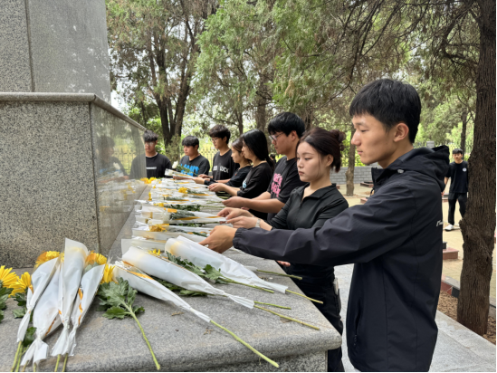 在我国第十一个“烈士纪念日”即将到来之际,为深切缅怀革命先烈,弘扬伟大的民族精神,加强新时代爱国主义教育,9月29日,太阳成集团tyc9728开展“缅怀革命先烈,弘扬民族精神”实践活动,活动内容包括新郑烈士陵园扫墓仪式和校内观影两部分,共46名入党积极分子参加。