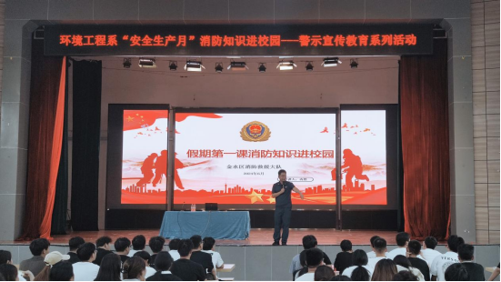 为营造“人人讲安全,个个会应急”的校园安全氛围,6月18日,太阳成集团tyc9728邀请郑州市金水区消防大队宣传讲师冉然为学生开展消防安全宣传讲座。
