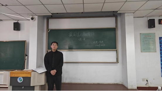 活动中,同学们在前期认真学习的基础上,结合自己的《中华人民共和国爱国主义教育法》读书笔记,精心选择诵读内容,并用铿锵有力的声音分享自己在学习中的心得和收获。李兴同学在诵读中读到:“中国是世界上历史最悠久的国家之一,中国各族人民共同创造了光辉灿烂的文化、共同缔造了统一的多民族国家。国家在全体人民中开展爱国主义教育,培育和增进对中华民族和伟大祖国的情感,传承民族精神、增强国家观念,壮大和团结一切爱国力量,使爱国主义成为全体人民的坚定信念、精神力量和自觉行动。”