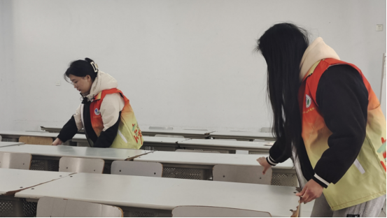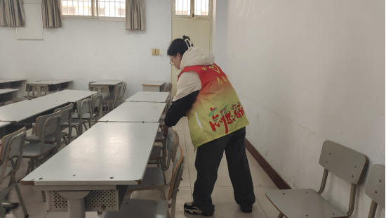 活动中,志愿者主动帮助同学晒被子、接热水等,为有需要的同学提供力所能及的帮助。此外,志愿者在上课之余积极打扫教室卫生,捡拾校园内的垃圾和杂物,用实际行动为同学们创造了更加舒适、整洁的学习环境。