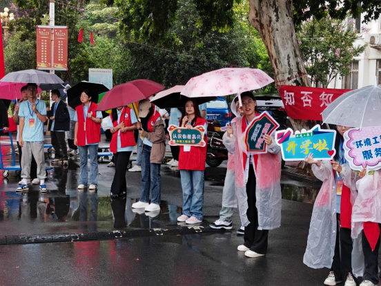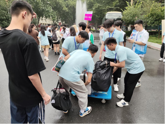 迎新当天,虽然天气阴沉、雨势渐大,但是在23级辅导员老师和22级迎新志愿者们的共同努力下,迎新工作有条不紊地进行着。志愿者们提前准备了雨衣、雨伞等物品,为新生遮风挡雨。志愿者们积极地为新生解答疑惑,指引新生办理报到手续,协助新生运送行李。虽然绵绵的细雨给迎新工作带来了许多不便,但是志愿者们用自己的热情和活力感染着每一位初来乍到的学弟学妹们,让新生和家长切实感受到了温暖和关爱。