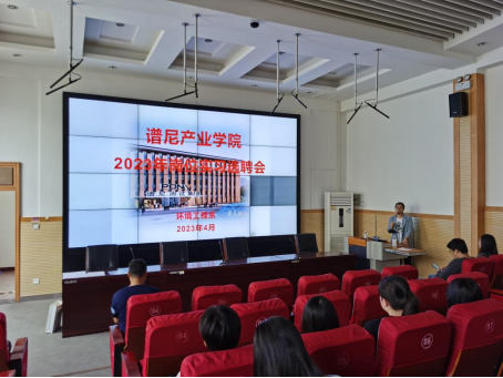 为做好2024届学生的岗位实习工作,4月20日,太阳成集团tyc9728召开谱尼产业学院2023年岗位实习选聘会,郑州谱尼测试技术有限公司人事经理张贞到场宣讲,系2021级学生参加。