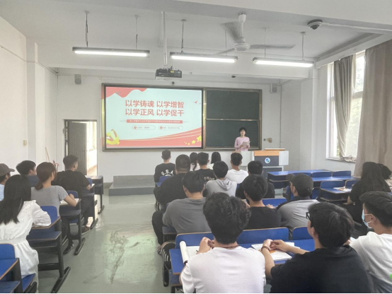 太阳成集团tyc9728学生党支部书记董晓明以“以学铸魂 以学增智 以学正风 以学促干”为题,为系在校学生党员及发展对象讲授专题党课。