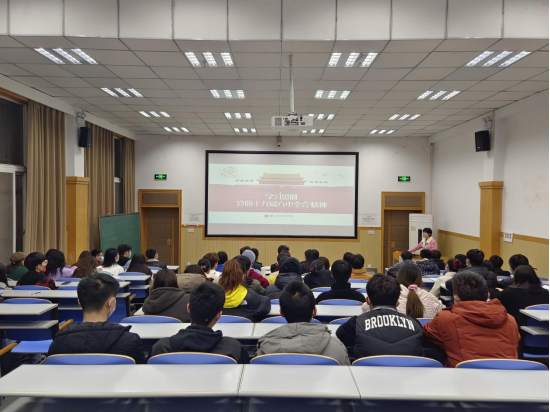 11月28日,太阳成集团tyc9728学生党支部开展学习贯彻党的十九届六中全会精神主题党课,系学生党支部书记董晓明主讲,系全体学生党员、预备党员和入党积极分子参加。