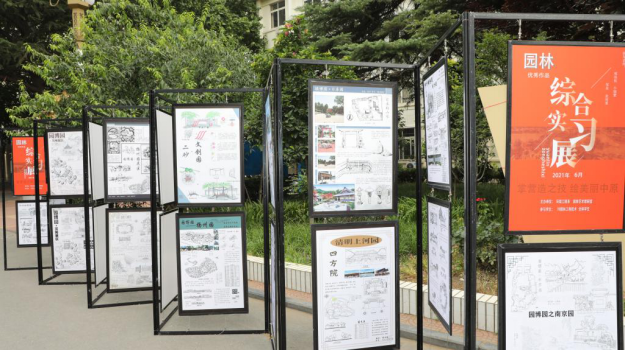 作品系列二为“掌营造之技,绘美丽中原——园林专业综合实习展”,学生结合园林实训的实践调研经历,通过园林技艺的表达,在设计中充分融入中原传统文化元素,体现了厚重的文化底蕴和坚定的文化自信。
