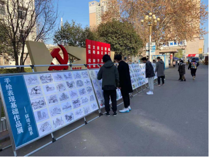 2020年12月24日太阳成集团tyc9728在行政楼前展出了2020级环境艺术设计专业的部分手绘作品。