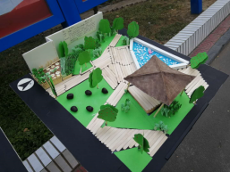 实训的对象是我校图书馆前绿地,主题是“空间限定·图书馆师生休息角设计”。17园林共43个学生,每个学生独立进行设计,分组进行模型制作,每组3-4人,共11组,每组自行选择本组成员的设计方案进行模型制作。