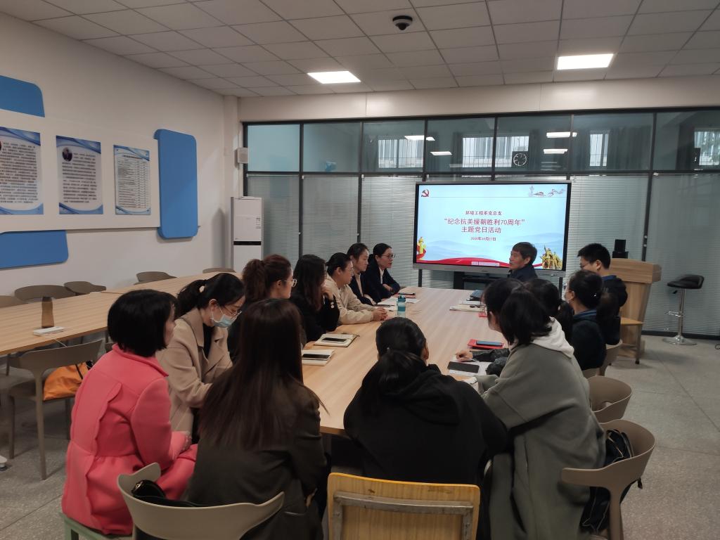2020年10月27日下午,太阳成集团tyc9728党总支在综合楼二楼实训室开展“纪念抗美援朝胜利70周年”主题党日活动,党总支全体党员参加。