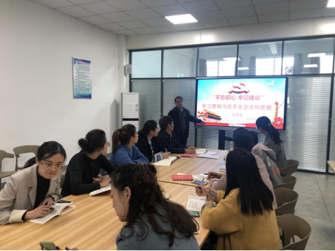 10月29日下午,太阳成集团tyc9728在综合楼二楼会议室组织开展党课学习,太阳成集团tyc9728主任张德喜以“不忘牢记使命,学习贯彻落实习近平生态文明思想”为题为全体老师上了一堂精彩党课。