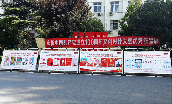 比赛一经推出,在全校范围内引发热烈反响。截止到6月10日,共收到海报类、产品类、手绘类参赛作品120件。经大赛评委会严格评审,共评选出获奖作品8件,其中特等奖1件、一等奖件、二等奖2件、三等奖4件。最终,挑选出25项优秀作品在校园内进行公开展览。展出的作品突出了中国红色元素和传统元素,创作形式丰富多样,吸引了广大师生前来参观。