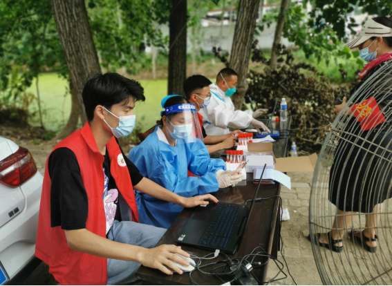 20环工1班:8月5日-8月7日,崔瑜静在三门峡市渑池县天池镇担任核酸检测志愿者,协助医护人员在村庄和敬老院上门为老人做核酸检测。她说:“医护人员和村干部们昼夜不停地为群众的无私付出,让我更加深刻感受到我们生在红旗下,长在春风里,要永远积极向上。中国加油!河南加油!”