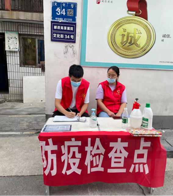 19环艺校企1班:自8月4日起,李伟杰在沁阳市东关社区担任疫情防控志愿者,主要参与返乡人员排查登记和卡点出入扫码测温,协助社区筑牢疫情防控防线;自8月12日起,身为一名预备党员的邢珂戬在巩义市文化街邮电局家属院担任核酸检测志愿者,每天对小区出入人员进行扫码测温,协助老人进行信息登记;自8月14日起,张晓涵在漯河市舞阳县舞泉镇南街村社区担任疫情防控志愿者,在疫情防控检测站负责排查外来车辆与外来人员,认真做好防疫登记工作。邢珂戬说:“生活中,我始终牢记自己身为预备党员的责任,在疫情期间我更应该扛起这份责任,直至战胜疫情。”