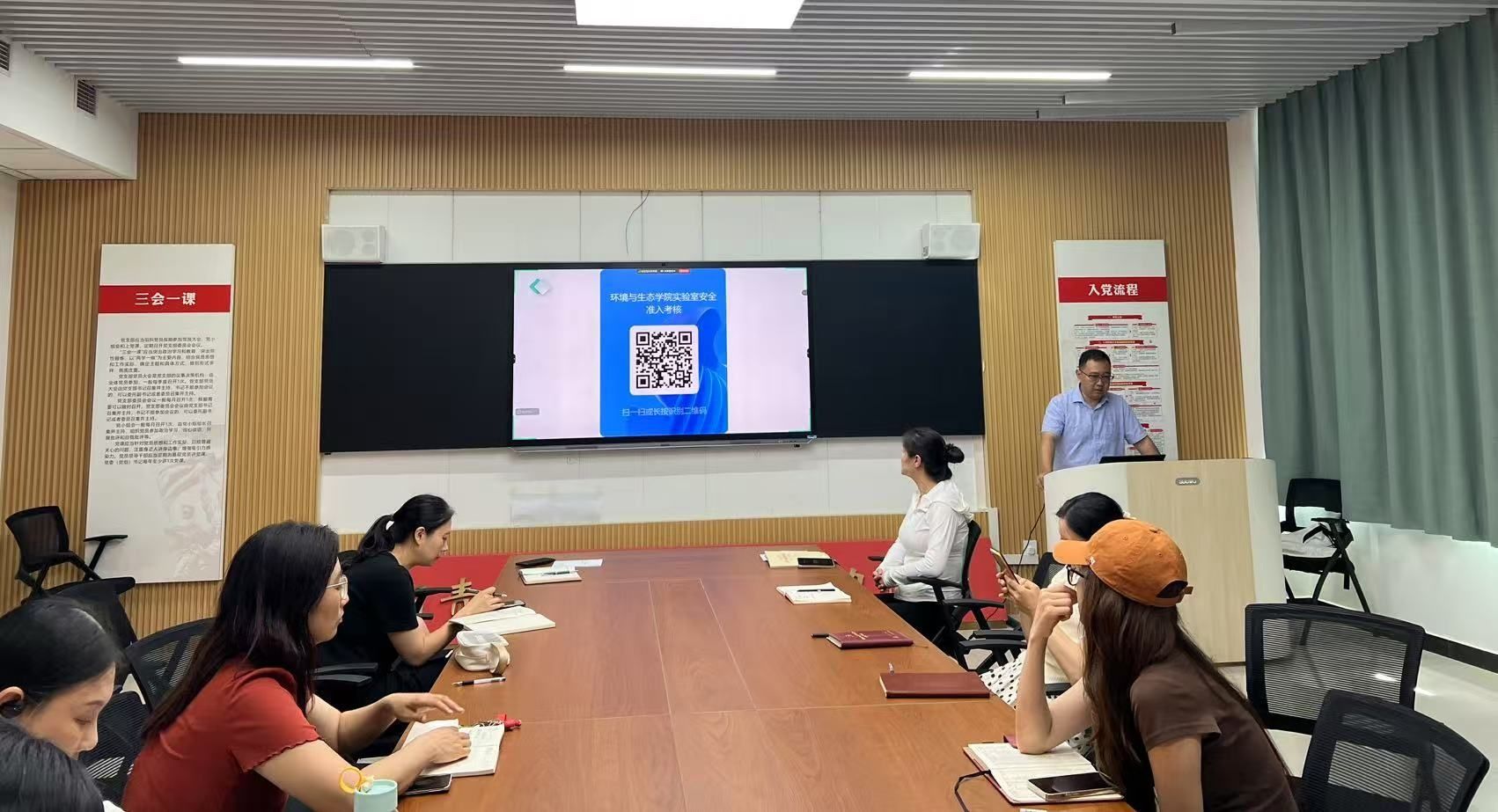 教学科研办公室主任郭朔泽以《安全第一 预防为主:环境与生态学院实验室安全实践》为主题,从“实验室危险因素、实验室环境安全、实验室药品管理、案例分析”四个方面系统阐述了实验室安全管理的核心要点,对全体教职工进行了深入细致的安全教育。